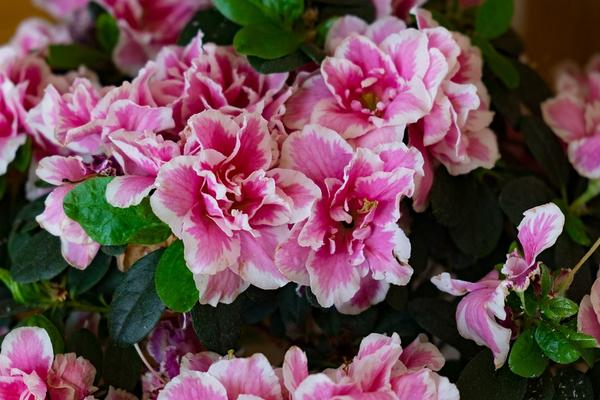 Ces Azalées qui ont été forcées pour fleurir pendant la période des fêtes sont en général des hybrides créés pour ce type de culture.