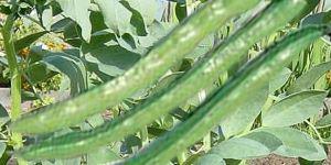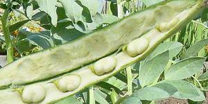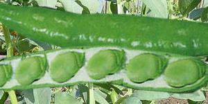 Variété très précoce et productive, longues cosses groupées par 2 contenant de 7 à 8 grains blanchâtres.