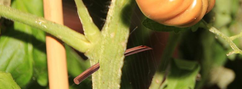 Pour lutter contre le mildiou des tomates, il est parfois recommandé de transpercer la tige principale avec un fil de cuivre.