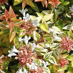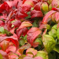 Abélia grandiflora Kaleidoscope, Euonymus fortunei'Emerald Gold', Nandina domestica « Firepower », cotoneaster dammeri.