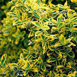 Ce fusain nain panaché jaune est un bel arbuste aux feuilles vertes bordées de jaune vif lumineux. Il entre dans la composition de bacs avec plusieurs plantes pour faire de jolis contrastes. C’est une plante très robuste qui convient très bien aux tombes peu visitées dans l’année ( éloignement). Une place au soleil lui convient parfaitement, car à l’ombre les couleurs sont moins vives.
