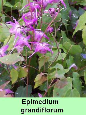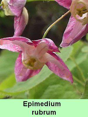 Epidium grandiflorum : feuilles pourpres au printemps, devenant vertes en été et brunissant en automne. Fleurs roses claires.