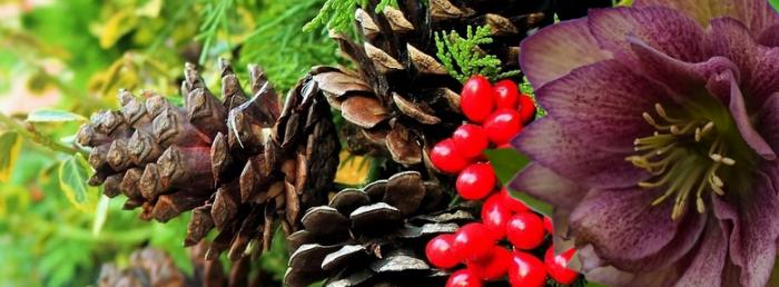 Dans un jardin quand l’hiver arrive, de nombreux végétaux à fleurs ou à feuillage peuvent fournir d’excellentes ressources pour vous lancer dans la composition de bouquets ou de couronnes.