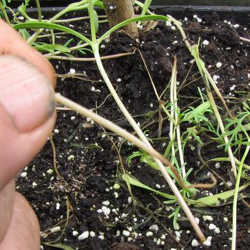 Quand les semis sont trop denses, les plantes « filent » et s’étiolent ce qui favorise l’apparition de la maladie.