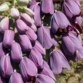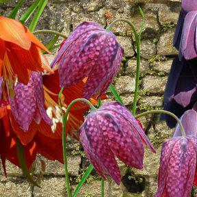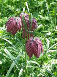 Plante à tiges de 25 à 30 cm, portant de 2 à 5 fleurs très originales en avril-mai en forme de clochettes lie de vin et dont le dessin de couleur évoque un damier.