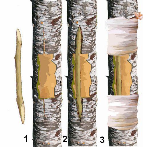 Lorsque l’écorce d’un jeune fruitier a été arrachée par un animal (chevreuil, lièvre, lapin...), c’est la seule méthode pour le sauver.