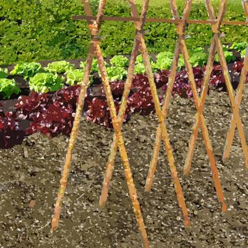 Fichez dans le sol des rames de 2 min 50 s de hauteur sur deux lignes espacées de 75 cm et inclinez-les vers le centre et liez-les.