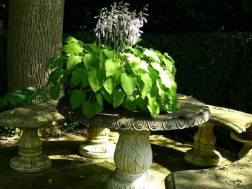 En pot, en été, les hostas sont régulièrement arrosés.