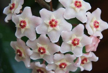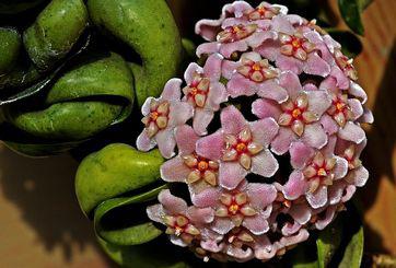 C’est l’hoya le plus cultivé. La plante a des rameaux volubiles qui portent des feuilles rappelant la texture des plantes grasses.