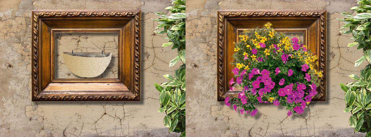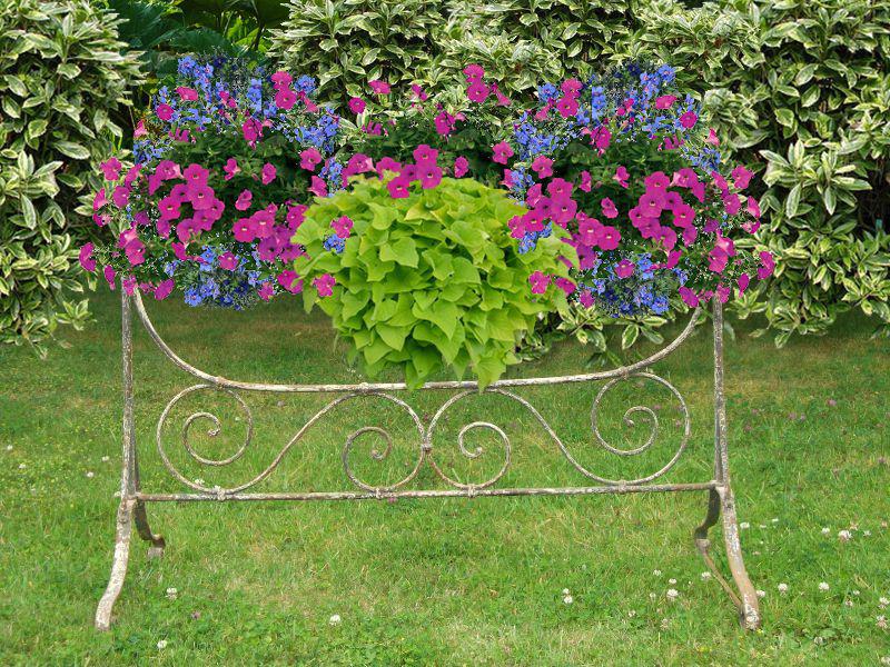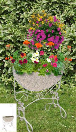 Sur l'image de droite il ne restait plus que le pied auquel on a fixé une grande jardinière garnie de plantes retombantes.