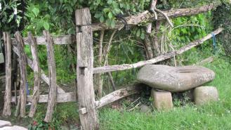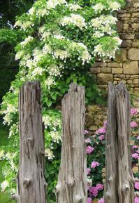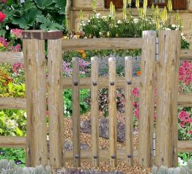 Pour décorer cette entrée de jardinet, un petit portillon rustique, fait de morceaux d'échalas de châtaigner ou d'acacias. Facile à faire en assemblant les différents éléments à plat sur une terrasse.