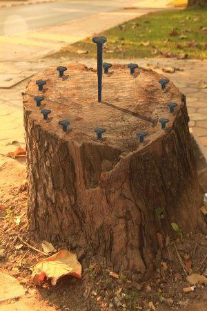 Fixez un grand clou au centre de la souche (pour plus de justesse vous pouvez l'incliner à 45° au nord).