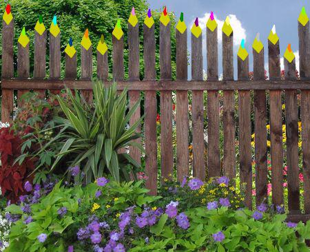 Les lattes en bois de cette vieille palissade sont taillées en pointes sur différents niveaux. Les extrémités sont peintes avec des fonds de pots de peintures restants, pour donner l'illusion de crayons de couleur.