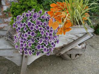 Qu’elles soient en métal ou en bois les anciennes brouettes peuvent vous servir de contenants pour faire des compositions florales. Plutôt que de les mettre au beau milieu d’une pelouse, incluez-les dans une composition avec d’autres objets ou au pied d’un massif d’arbustes par exemple.