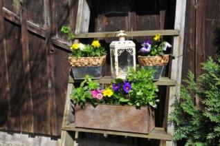 Récupérés au grenier, vieilles caisses, vieux paniers de légumes, auront une nouvelle vie en servant de jardinières, après avoir protégé l'intérieur avec un film plastique.