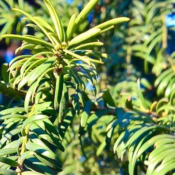 -Taxus baccata fastigiata Aurea : à rameaux denses dressés, à feuilles dorées.