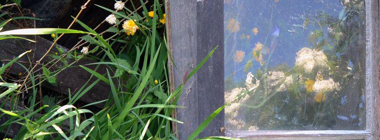 Prenez une vieille fenêtre, « laissez-la dans son jus » et remplacez les carreaux par des miroirs. En faisant votre miroir avec de petits carreaux, vous évitez aux oiseaux de venir se fracasser dessus, ce qui serait un comble pour celui qui pratique la culture biologique.