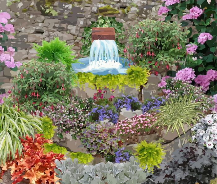 Installez devant un mur une auge en pierre. Sa taille est fonction de la grandeur du jardin.