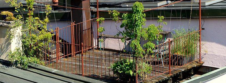Le vent souvent plus intense qu’au sol doit imposer l’emploi de pots ou jardinière stables.