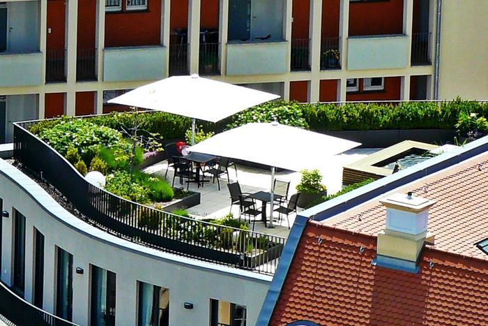 Les terrasses sur le toit peuvent elles aussi s’habiller en aménageant un jardin vert et fleuri pour offrir un espace de vie avec un environnement naturel au cœur de la ville.