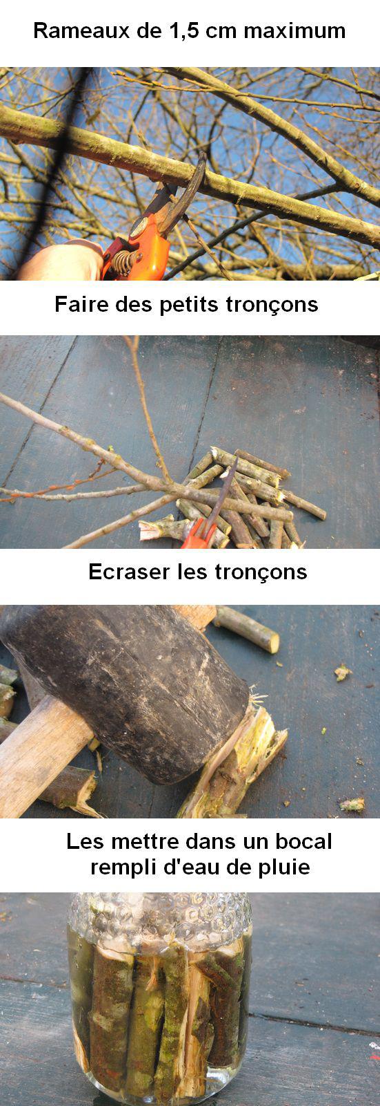 Remplissez un récipient avec de l’eau de pluie et mettez y à macérer les morceaux de saule. Le mélange doit être dense.