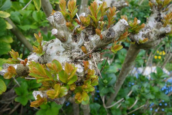 Au premier redoux le printemps venu, pourtant invisibles lors de la taille, les bourgeons latents émettent de jeunes rameaux.