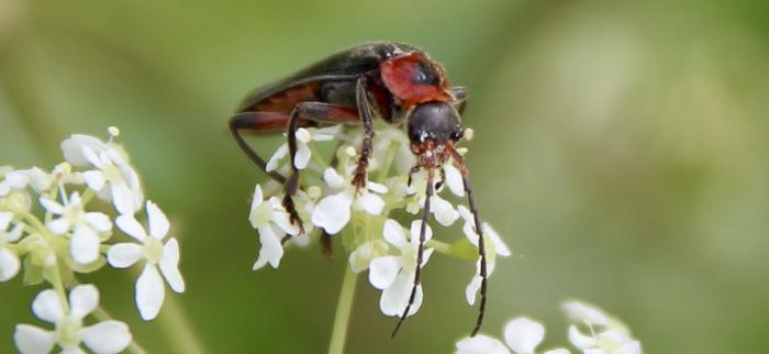 Le Téléphore moine chasse petits insectes et larves en tous genres, il s'en prend aux petites limaces et les escargots.