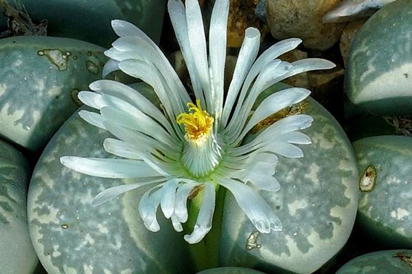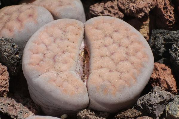 Si les feuilles de ces plantes lorsque vous les achetez en jardinerie sont franchement apparentes pour éviter tout risque de pourriture, il faut savoir que dans leur milieu naturel d’Afrique du Sud les feuilles accolées et semi cylindriques gorgées d’eau des plantes-cailloux affleurent à peine à la surface. Elles se protègent ainsi des rayons brulant du soleil et des animaux grâce à mimétisme parfait avec les cailloux environnants en prenant leur forme et couleur.