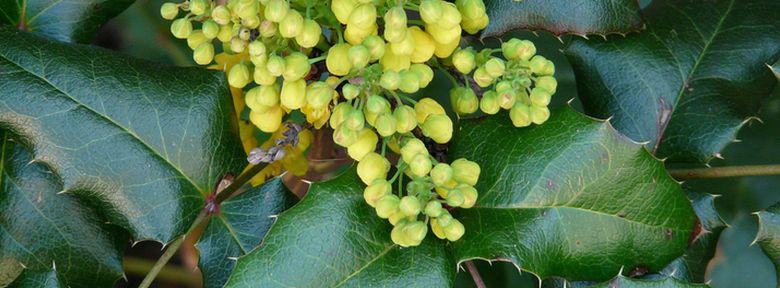 La floraison du mahonia est intéressante au jardin bio, les insectes butineurs trouvent là du nectar, denrée rare en hiver.