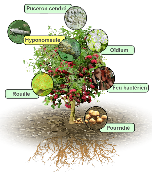 Les jeunes aubépines, ont à subir des maladies cryptogamiques et parasites qui peuvent nuire à leur développement. Des traitements bio existent.