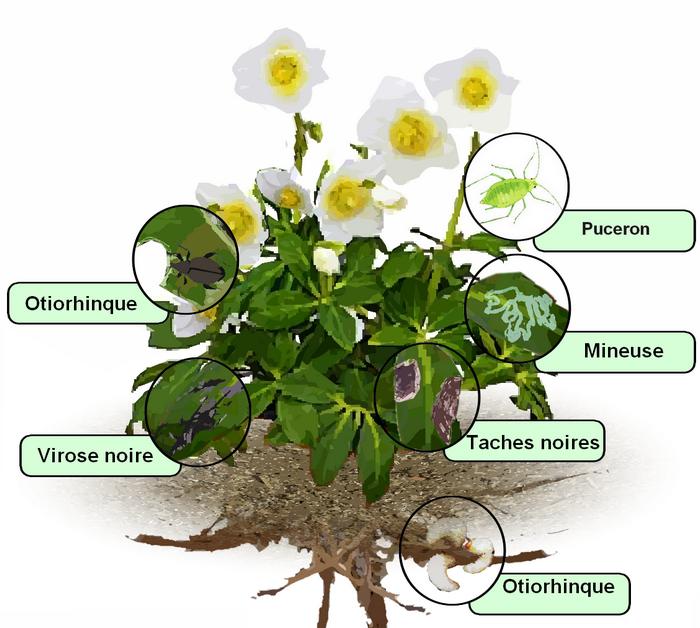 Même si elle sont plus résistantes de l'hellebore niger, les hellebores hybrides peuvent sujette à quelques maladies cyptogamiques et être infestées par des parasites. Des traitements bio simples et efficace peuvent être appliqués pour les garder en bonne santé.