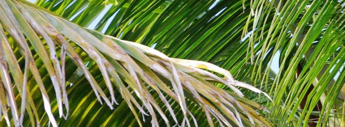Dessèchement inabituel des palmes. Mort du palmier. |