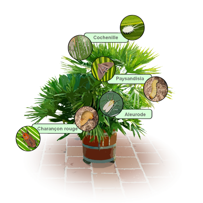 En bonnes conditions de culture et quand ils jouissent d’un climat approprié, les palmiers sont des végétaux résistants, mais ils peuvent quand même être infestés par des insectes parasites ou infectés par des maladies. Des solutions comme la prévention et quelques traitements bio existent pour en limiter l’impact.