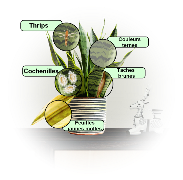 La sensevière, sansevieria ou langue de belle mère peut être atteintes par quelques parasites et de maladies, qui peuvent affaiblir ou même tuer la plantes, il est donc primordial de les identifier rapidement et de prendre les mesures adéquates pour les traiter avec des produits bio.