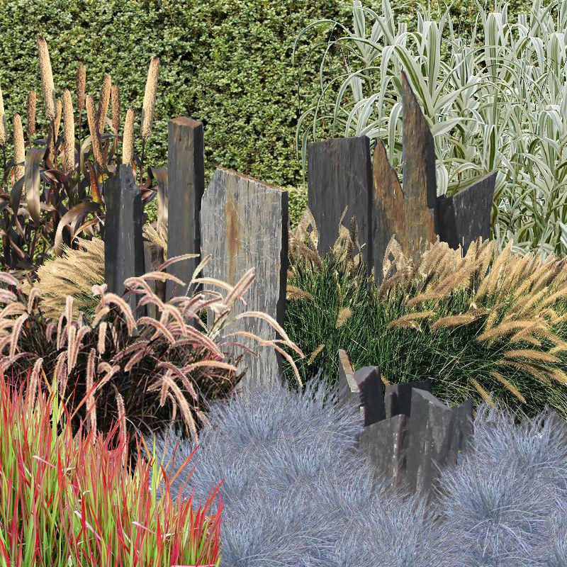 j 'ai une plate bande rectangulaire de 18metres /1.50 à amenager j 'aimerais planter des graminés auriez vous un modèle qui puisse m 'aider et m 'inspirer ?merci beaucoup