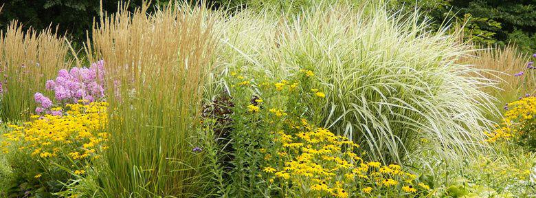 Elles servent elles-mêmes de toile de fond à des massifs de fleurs annuelles. Prenez des graminées de formes, de hauteur et de couleurs différentes. Mélangez des graminées à port aérien et d’autres de forme trapue.