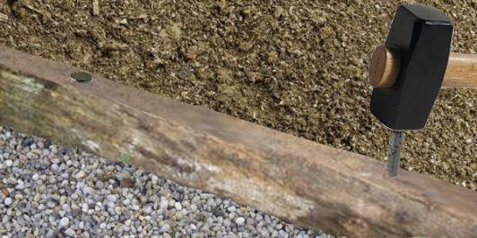 Ameublissez la terre à l’emplacement des poutres pour pouvoir avec un râteau niveler correctement le sol.