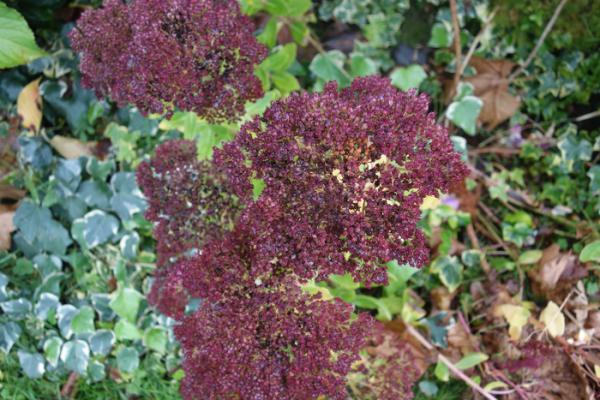 Il a suffi de l’apparition des premières pluies d’automne pour que miraculeusement, les fleurs ternes oubliant leur couleur rose d’origine se raffermissent en gros globes de petites fleurs allant du vert pâle au blanc terne légèrement rosé spectaculairement ponctué de rouge tirant sur le mauve et le violet.