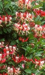 Vigoureuse grimpante volubile, ce chèvrefeuille à floraison tardive peut pousser seul ou dans un petit arbre ou arbuste. Le feuillage de printemps est luxuriant et les nouvelles pousses sont violettes. Ses fleurs estivales blanc crème, tubulaires et parfumées, sont striées de pourpre.