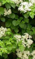 En été, les grandes ombelles de fleurs blanc crème de ce vigoureux hydrangea ressortent sur les larges feuilles arrondies. La belle écorce brune des tiges se desquame. Les jeunes plants ont besoin de soutien pour s'installer, puis s'accrochent à laide de leurs racines aériennes.