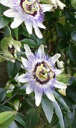 La passiflore bleue, une bonne grimpante pour une pergola au soleil, pousse vite et porte des feuilles découpées d'un vert intense. Les fleurs étonnantes sont blanches en général, avec une couronne violette, bleue et blanche.