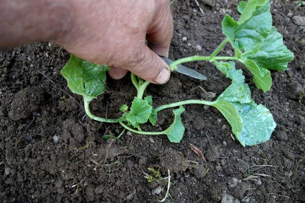 Au stade de quatre feuilles, pincez au-dessus de la deuxième feuille. Sur les deux branches ainsi formées, taillez vos melons au-dessus de la troisième feuille.