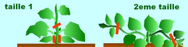 Pincez les trois nouvelles pousses au-dessus de la troisième feuille. Ne garder qu’une dizaine de fruits par pied. Taillez deux à trois feuilles après les fruits.