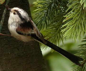 C'est ma préférée. C'est vraiment une adorable petite boule de plume crème à rosé avec une longue queue blanche et noire. Elle aussi est une véritable acrobate quand elle recherche sa nourriture dans les arbres et les arbustes du jardin.