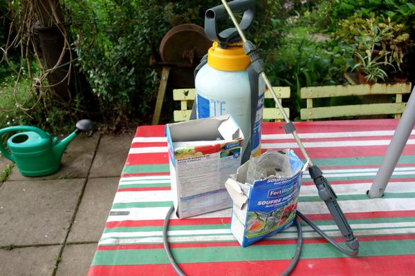 Traitement à la bouillie bordelaise mélangée avec du soufre. Ce mélange renforce son efficacité.