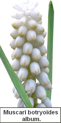 L’espèce type présente une grappe de fleurs bleu ciel, mais on cultive la superbe variété blanche :