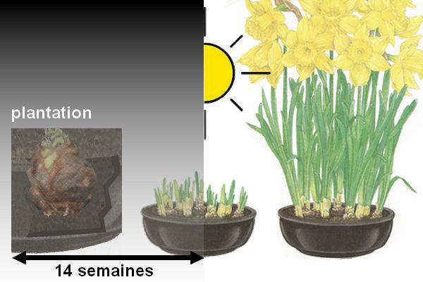 Arrosez et maintenez au froid vos coupes de narcisses. Entre 5° et 9 ° maximum, dans l’obscurité d'un sous-sol, d'une cave ou mieux encore dans un châssis froid obscurci d’un plastique noir, jusqu’à l’apparition des pousses.