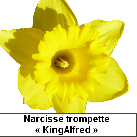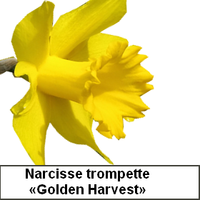 Variété vigoureuse à floraison jaune d’or, la trompette légèrement plus foncée. Une des premières à fleurir. 50/60 cm.
