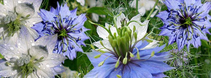 Nigelle" Miss Jekyll" fleurs bleu tendre,