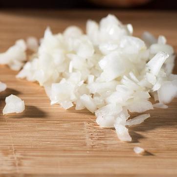 Coupez 100 g d’oignons frais en petits morceaux avec un couteau parfaitement aiguisé. Vous évitez ainsi de perdre le jus de l’oignon. Mettez vos oignons coupés dans un grand bol et versez dessus 1 litre d’eau de pluie et laissez macérer 24 h à température ambiante de la maison.